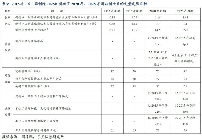 2015年,国务院印发《中国制造2025》明确指出,我国力争通过“三步走”实现制造强国的战略目标。到2025年,要力争迈入制造强国行列,要形成一批具有较强国际竞争力的跨国公司和产业集群,在全球产业分工和价值链中的地位明显提升。