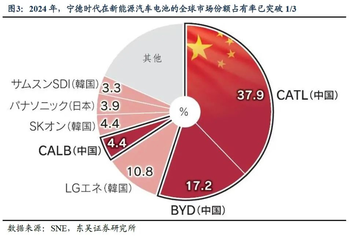 第二,在新能源汽车行业,参考Mark Lines与SNE数据统计,依托比亚迪、蔚来、理想等新能源汽车厂商,以及宁德时代、比亚迪、中创新航等新能源电池品牌,目前无论在全球新能源汽车销售,还是在新能源汽车电池方面,我国的全球市场份额占有率均突破50%。