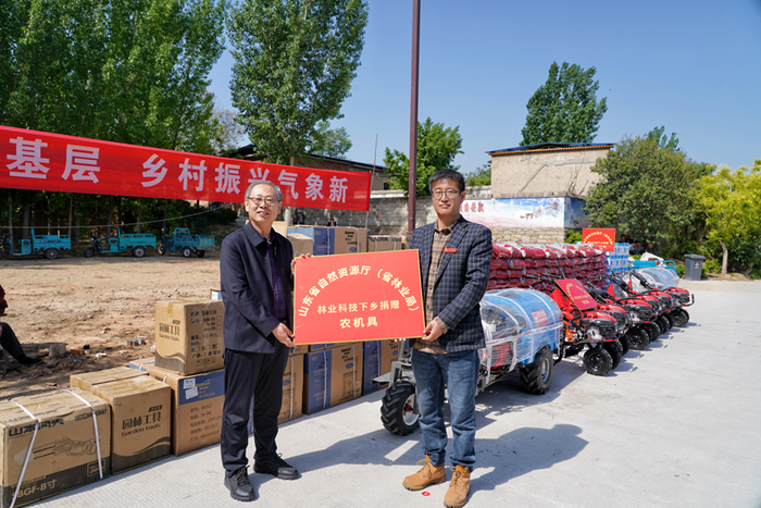 活动现场,省自然资源厅为当地果农代表赠送了喷雾机、小型旋耕机、修枝剪、硫酸钾复合肥、靠山多霸果树专用型微生物菌剂等果树物资,以及杏栽培管理图书、鲁林好品手册等技术资料。