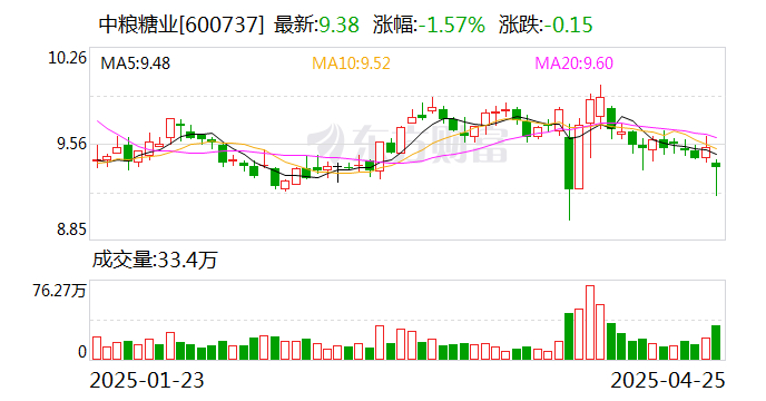 中粮糖业一季度归母净利润1.77亿元,同比下降59.8%