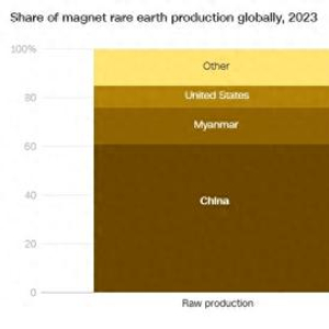 “这(稀土被卡)正迅速成为我们的致命弱点。这些出口限制特别危险的地方在于,往往其中一种材料就是整个供应链的关键薄弱环节,而其生产完全依赖于中国。”
