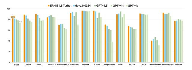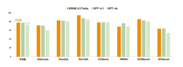 “多模态将成为未来基础模型的标配,纯文本模型的市场会越变越小,多模态模型的市场会越来越大。”基于这样的判断,文心大模型4.5 Turbo和X1 Turbo都进一步增强了多模态能力。在多个基准测试集中,文心4.5 Turbo多模态能力与GPT 4.1持平、优于GPT 4o。