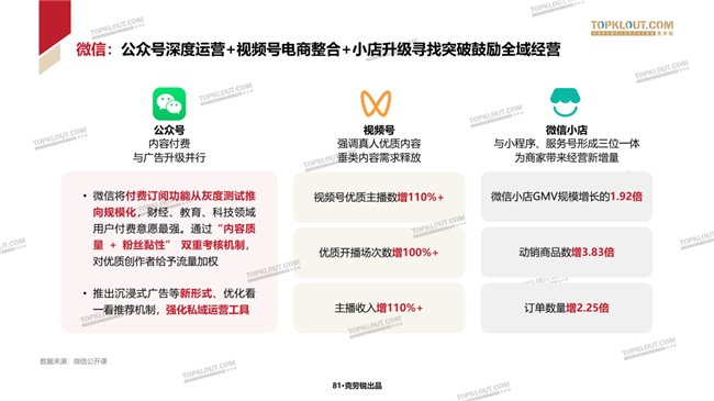 去年,视频号的快速增长,为微信小店与小程序、服务号形成三位一体带来了帮助。