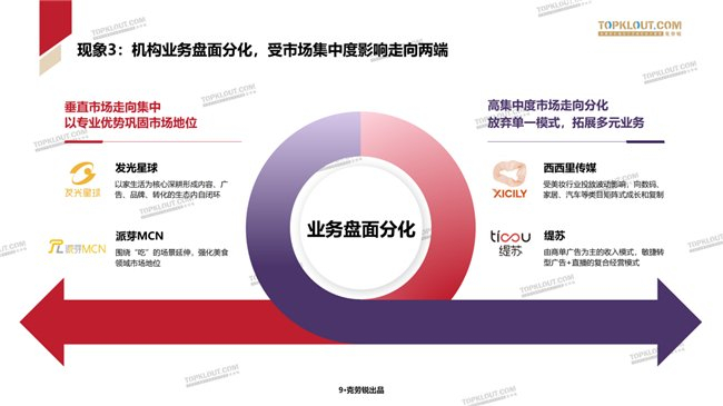 第二,高集中度市场走向分化,众多机构开始放弃单一模式,拓展多元业务