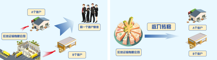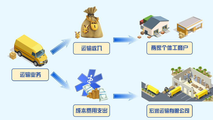 检查人员经过进一步核实确认,该运输公司与两家个体工商户共用运输车辆、驾驶人员和停靠场地等资源,这些车辆的成本费用在宏润运输有限公司中列支,所产生的运输收入却计入两家个体工商户名下。