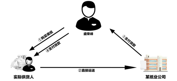 经过进一步梳理相关资金流向,检查人员发现盛荣峰实际上是一个“中间商”,他从全国各地购买废纸,让供货人直接将废纸运送到某纸业公司,某纸业公司将货款支付给盛荣峰,再由盛荣峰支付给实际供货人。