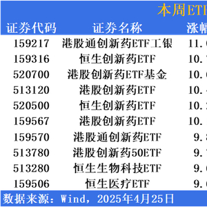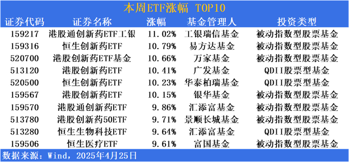 涨幅方面,港股创新药ETF独领风骚