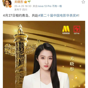 据悉,第二十届中国电影华表奖颁奖活动将于4月27日在山东青岛举行,数百位电影界代表将出席,与全国电影观众共同见证中国电影荣誉时刻。