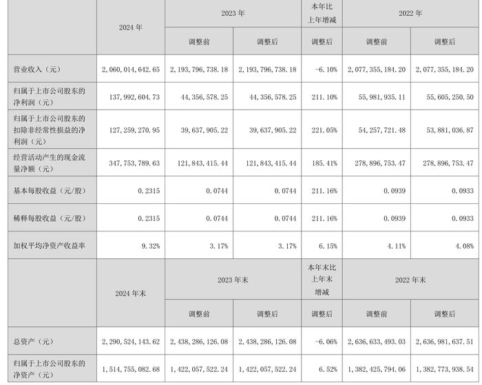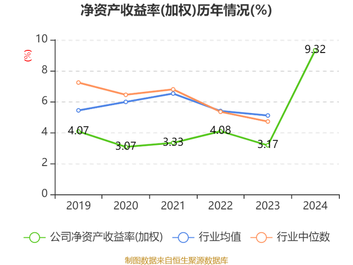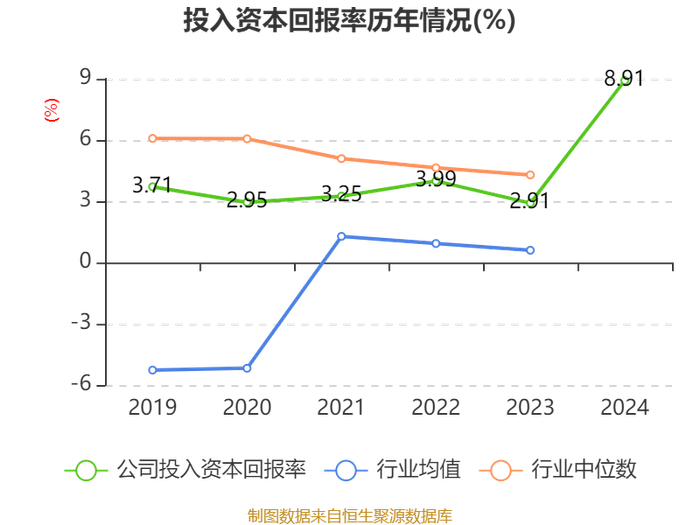 数据显示,2024年公司加权平均净资产收益率为9.32%,较上年同期上升6.15个百分点。公司2024年投入资本回报率为8.91%,较上年同期上升6个百分点。