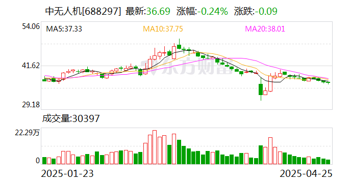 4月25日,中无人机(688297)公布2025年一季报,公司营业收入为2.36亿元,同比上升284.6%;归母净利润自去年同期亏损2700万元成功扭亏,实现归母净利润1685万元;扣非归母净利润自去年同期亏损3593万元成功扭亏,实现扣非归母净利润1544万元;经营现金流净额为-5.6亿元,同比下降19.3%;EPS(全面摊薄)为0.025元。