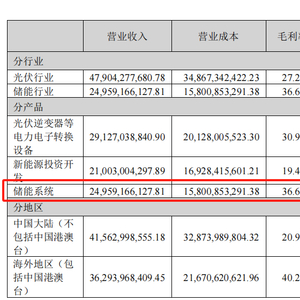 。储能系统营收249.59亿元,同比增长40.21%。毛利率36.69%,同比增长4.07%。