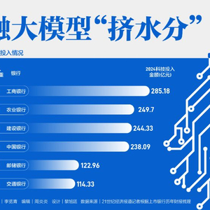 长期以来金融机构的科技投入规模巨大,特别是近年来“AI+”已成为重要战略。四大国有银行近年来的科技投入金额始终在200亿元以上,就2024年来看,21世纪经济报道记者不完全统计数据显示,上市银行业科技投入总金额超过1800亿元。