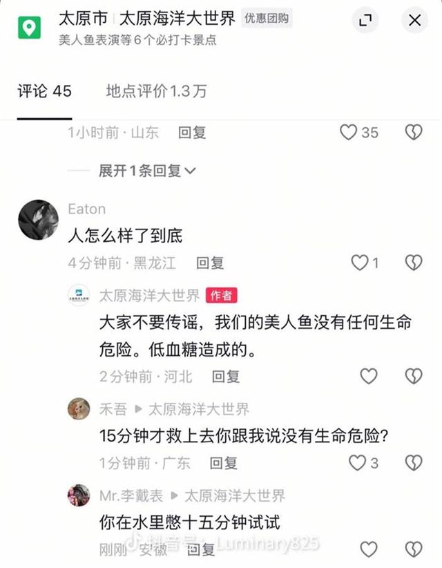 今晚7时许,极目新闻记者多次拨打太原海洋大世界网上所留电话,始终未能接通。记者注意到,其官方社交账号在评论区留言:大家不要传谣,我们的美人鱼没有任何生命危险。低血糖造成的。