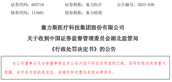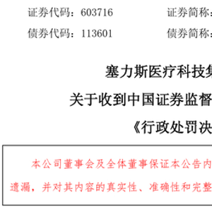 4月23日晚,塞力医疗(603716.SH)公告显示,因未按规定披露关联交易及资金占用、未按规定披露重要合同,塞力医疗、实控人温伟及多名董监高人员被处罚,罚款总额超千万。