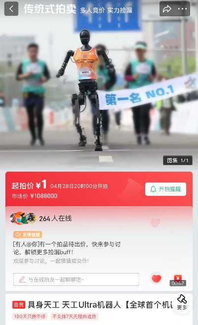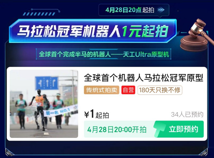 京东拍卖再启科技盛宴 4月28日半马冠军“天工”机器人1元起拍