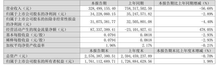 中证智能财讯特力A(000025)4月25日披露2025年第一季度报告。公司实现营业总收入3.28亿元,同比下降56.68%;归母净利润3422.81万元,同比下降2.89%;扣非净利润3107.54万元,同比下降4.40%;经营活动产生的现金流量净额为8733.74万元,上年同期为-2310.19万元;报告期内,特力A基本每股收益为0.0794元,加权平均净资产收益率为1.96%。