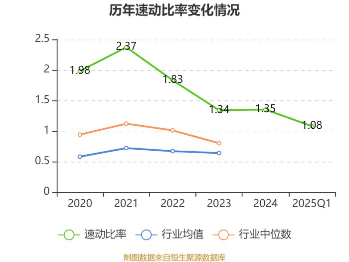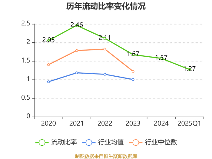 2025年第一季度,公司流动比率为1.27,速动比率为1.08。