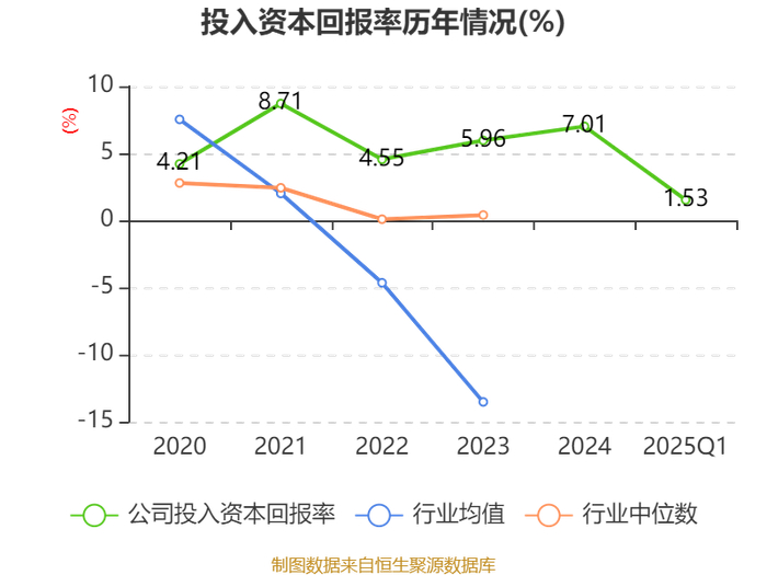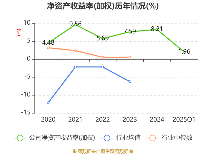 盈利能力方面, 2025年一季度公司加权平均净资产收益率为1.96%,同比下降0.21个百分点。公司2025年第一季度投入资本回报率为1.53%,较上年同期下降0.34个百分点。