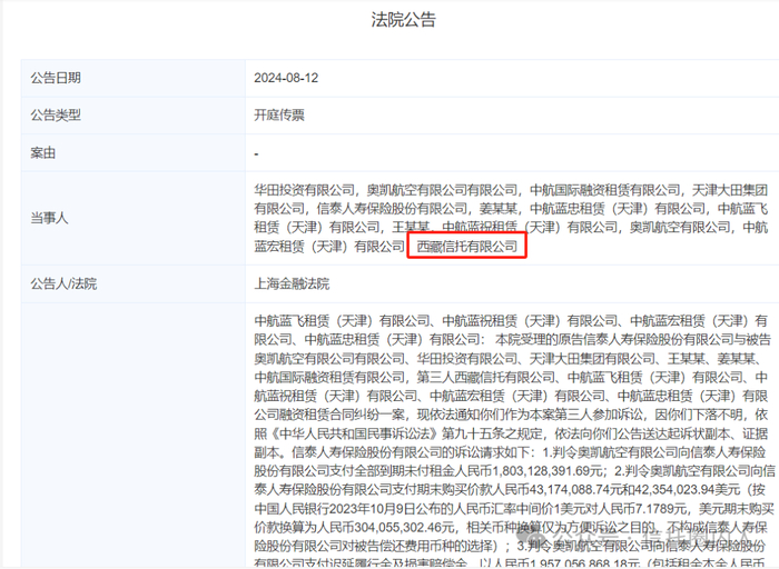 涉诉29.74亿!西藏信托通道业务踩雷航空企业!
