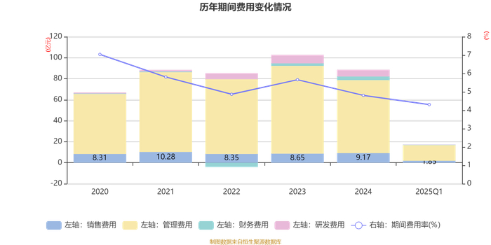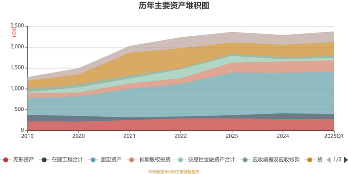 资产重大变化方面,截至2025年一季度末,公司货币资金较上年末增加11.01%,占公司总资产比重上升0.91个百分点;在建工程合计较上年末减少11.05%,占公司总资产比重下降0.85个百分点;无形资产较上年末减少0.71%,占公司总资产比重下降0.52个百分点;长期股权投资较上年末增加1.06%,占公司总资产比重下降0.31个百分点。