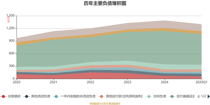 负债重大变化方面,截至2025年一季度末,公司应付票据及应付账款较上年末减少7.69%,占公司总资产比重下降1.99个百分点;应付职工薪酬较上年末减少76.78%,占公司总资产比重下降1.72个百分点;应交税费较上年末增加45.68%,占公司总资产比重上升0.82个百分点;一年内到期的非流动负债较上年末增加28.85%,占公司总资产比重上升0.54个百分点。