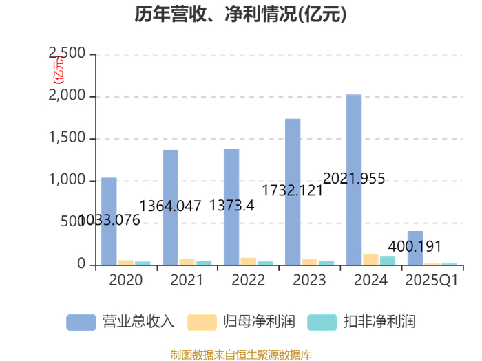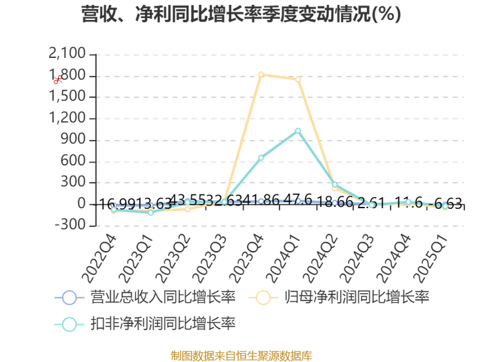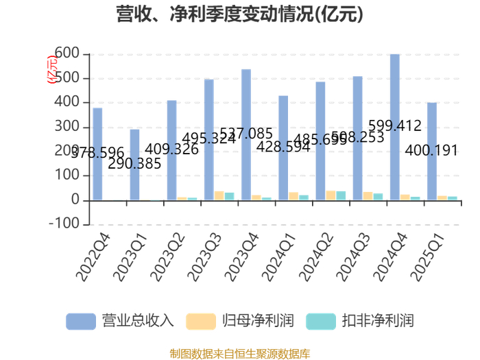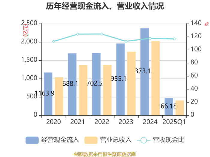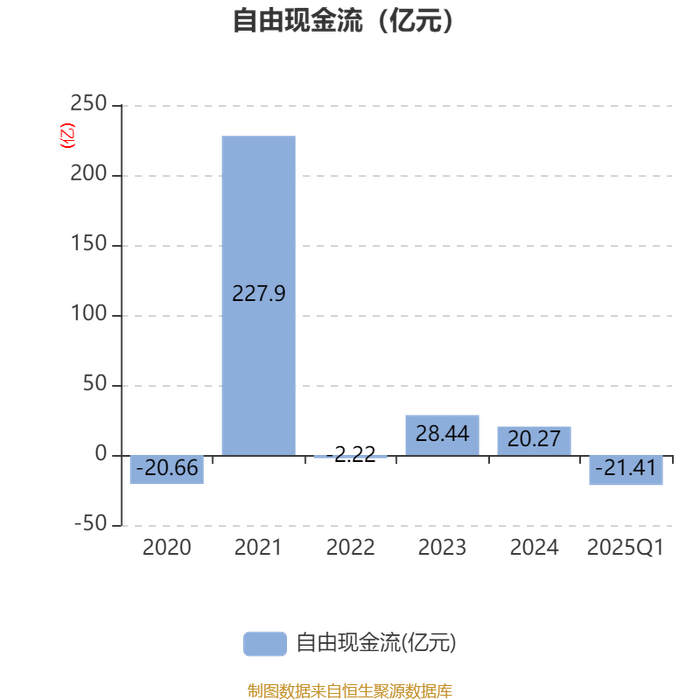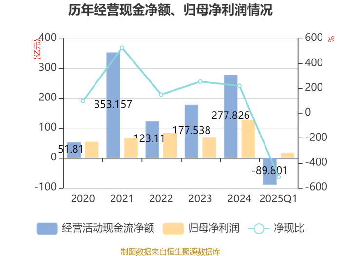 截至2025年一季度末,公司经营活动现金流净额为-89.8亿元,同比减少63.46亿元;筹资活动现金流净额3.03亿元,同比减少20.31亿元;投资活动现金流净额100.5亿元,上年同期为-27.23亿元。