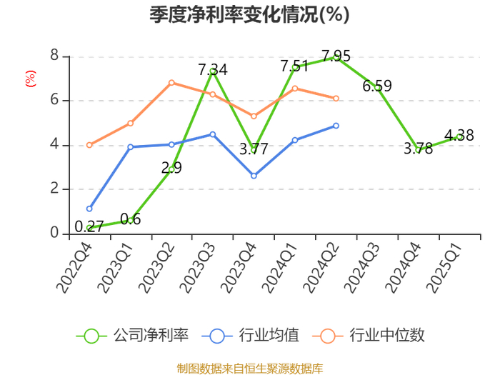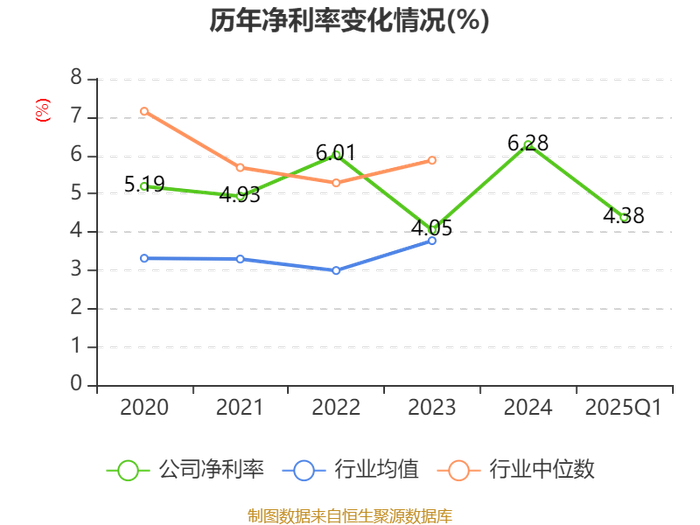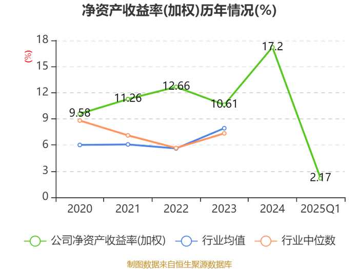 盈利能力方面, 2025年一季度公司加权平均净资产收益率为2.17%,同比下降2.43个百分点。公司2025年第一季度投入资本回报率为1.72%,较上年同期下降1.48个百分点。