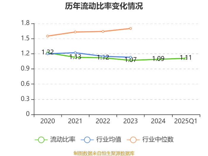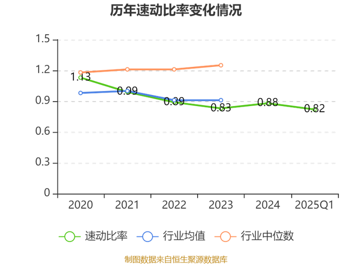 2025年第一季度,公司流动比率为1.11,速动比率为0.82。