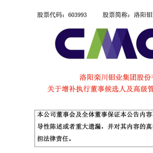 据悉,谭啸后续将牵头推进洛阳钼业管理流程变革和数字化。