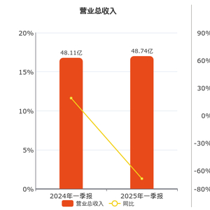 公司营业总收入为48.74亿元。归母净利润为4593.45万元。经营活动现金净流入为1.26亿元。
