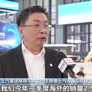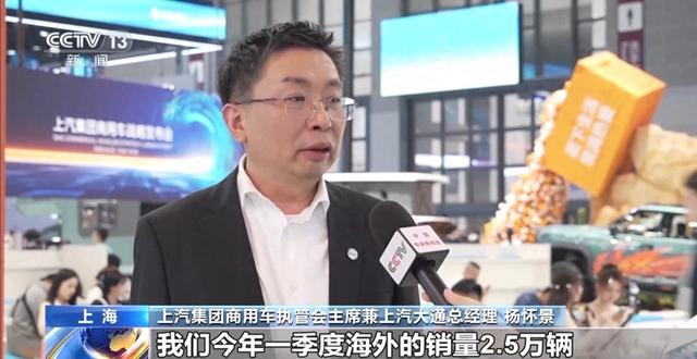 上汽集团商用车执管会主席兼上汽大通总经理 杨怀景:我们今年一季度海外的销量2.5万辆,同比增长9%。我们在全球各个地方利用当地的工厂深耕市场,服务好用户。