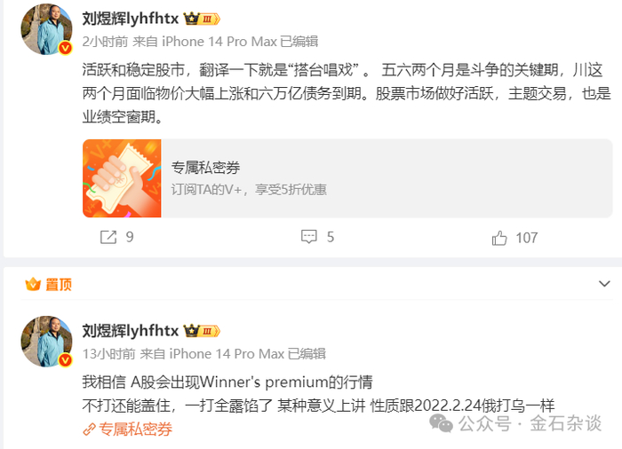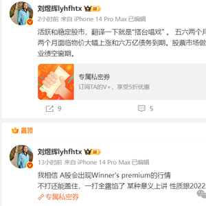 昨夜今晨,被两位大佬的言论刷屏了,刘煜辉最新观点:我相信,A股会出现Winner‘s premium的行情,即胜者溢价行情。