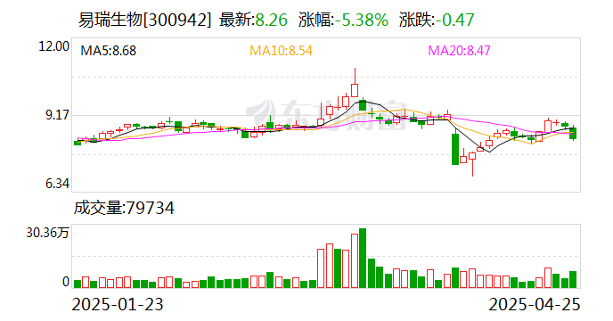 4月25日晚间,食品安全检测领域领军企业易瑞生物(300942.SZ)披露一则日常经营重大合同公告。公司近日与丹麦Chr. Hansen A/S(下称“科汉森”)签署合作协议,约定2025至2029年度(2025年度是指自本协议生效日期起12个月的期间,后续年份按相同方式计算)销售目标,合计金额7305.77万欧元,折合人民币超6亿元。其中2025年度销售目标约占2024年公司营收的42.18%。