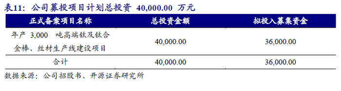 3.2、 募投:年产 3000 吨高端钛及钛合金线材,扩产比例42.86%