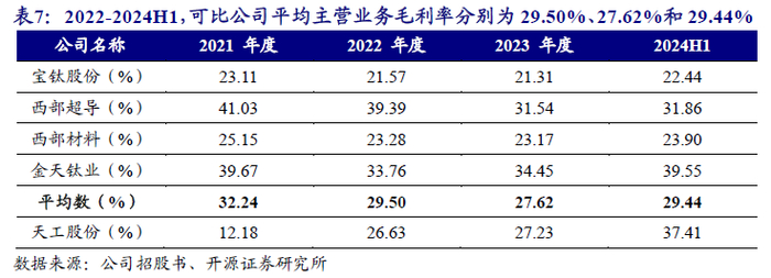 2024年公司综合毛利率为30.40%。毛利率存在一定波动性。2022年毛利率增幅较大,主要因2022年公司调整了战略布局,主要产品由纯钛产品向钛合金产品转型,产品从粗加工向精加工、深加工转型,消费电子用钛合金线材的产量和销量大幅增加。2023 年毛利率较 2022 年度增长 0.60个百分点,主要因为消费电子用钛合金线材的产量和销量持续增加,线材占主营业务收入的比例超90%。2024 年上半年,原材料海绵钛的采购价格下降,以及消费电子用线材采用短流程工艺及生产工艺持续优化,线材生产成本下降,毛利率有所提高,使得 2024 年上半年主营业务毛利率较 2023年度有所增长。