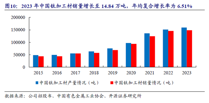 钛加工材产销量稳定增长,高端化发展市场空间大