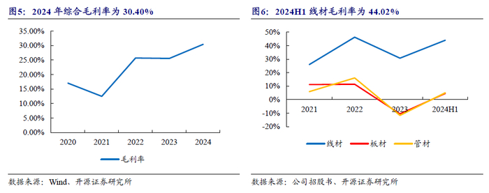 收入端:公司主营业务产品主要包括线材、板材和管材。2021-2024H1主营业务收入占营业收入的比例均在93%以上,主营业务突出。