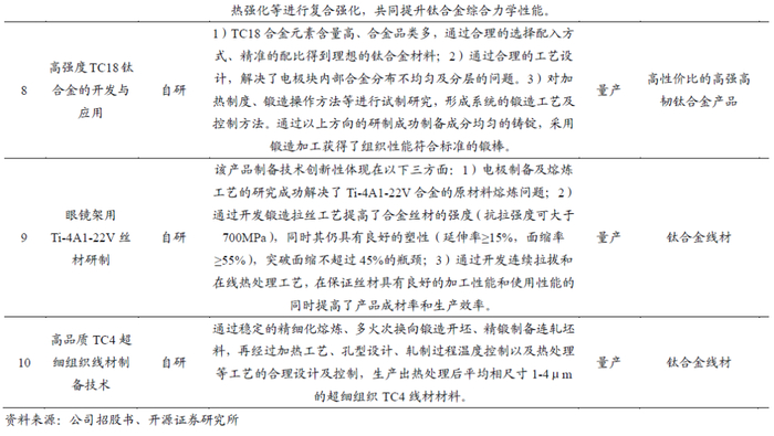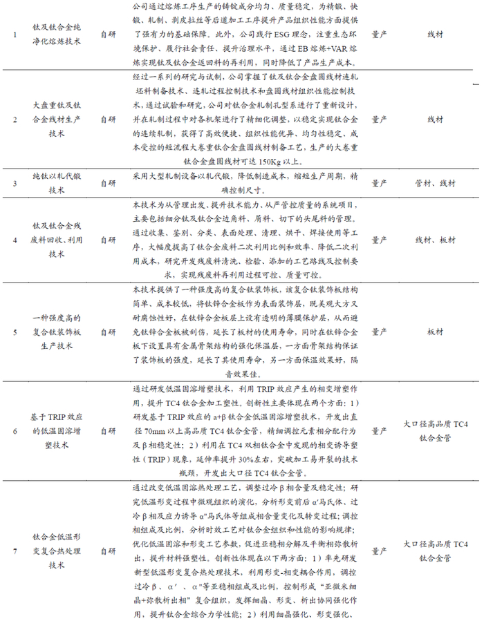 公司经过多年布局和投入,成功研发出符合下游客户要求的各类消费电子用钛材,并率先应用于多家消费电子市场主导品牌的高端机型。消费电子用钛材是公司重要的创新型产品,公司藉此成功开拓了新的市场领域,实现了业绩的大幅增长。此外,公司根据市场需求持续开展产品创新,先后研发出增材用高抗冲击低成本钛合金丝材、航天航空用耐高温型轻质钛合金等创新型产品。
