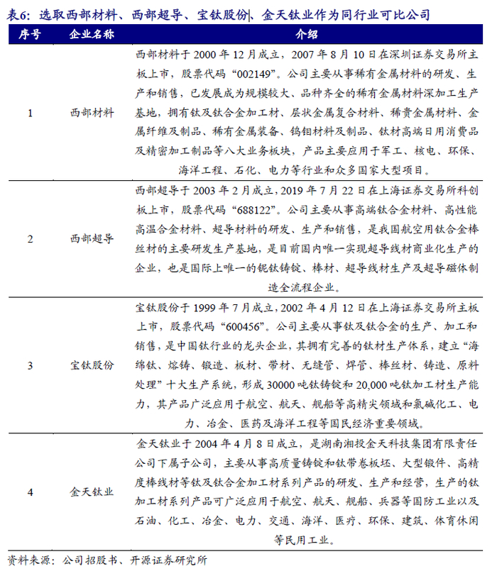 天工股份同行可比公司PE2023均值为39.1X。天工股份从事钛及钛合金材料的研发、生产与销售,将原材料海绵钛与其他金属元素通过配比、熔炼、锻造及各种精加工工序,制作成能最大程度发挥钛及钛合金材料技术性能的产品。公司钛及钛合金产品从粗加工逐步向精加工、深加工转型,包括消费电子行业、3D打印领域的钛合金线材等,开拓更广阔的新兴市场。考虑到公司技术及品牌优势,有望进一步提高行业渗透率,建议关注。