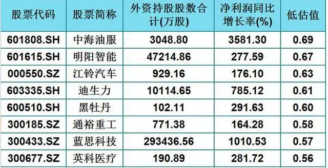 常年被低估的25只外资重仓股,业绩均是翻倍上涨,其中这25只分别为:中海油服、明阳智能、江铃汽车、迪生力、黑牡丹、通裕重工、蓝思科技、英科医疗、雅克科技、亿帆医药、恒力石化、招商轮船、贵研铂业、中航沈飞、三全食品、可立克、隆基股份、信达地产、长安汽车、天邦股份、新潮能源、越秀金控、天健集团、姚记科技。