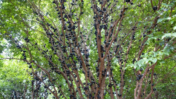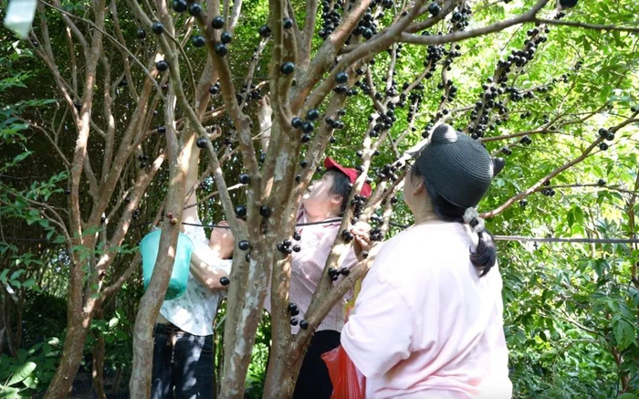 目之所及都是枝叶茂盛的嘉宝果果树,