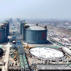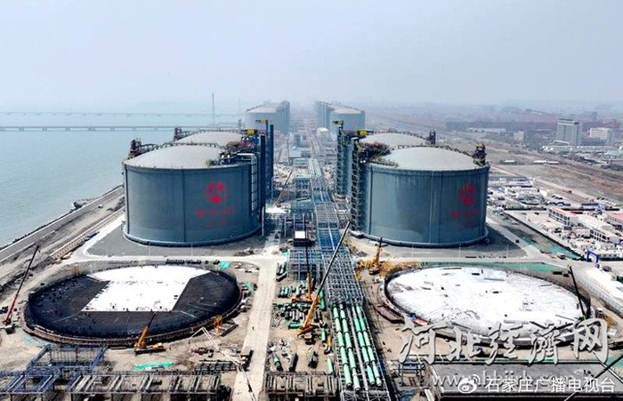4月17日,唐山市曹妃甸新天LNG接收站项目正在按建设节点稳定推进。项目全部建成投产后,将提高京津冀地区天然气应急调峰和供应保障能力。新华社发 杨世尧 摄