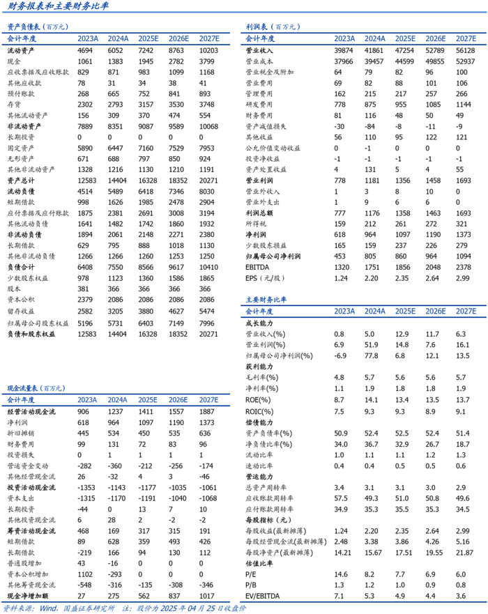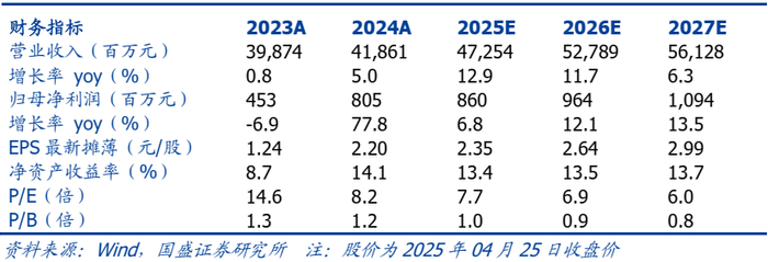 事件:公司发布2025年一季报。一季度实现营业收入93.89亿元,同比增长0.89%;归属于母公司所有者的净利润1.04亿元,同比减少15.41%;基本每股收益0.28元,同比减少12.5%。