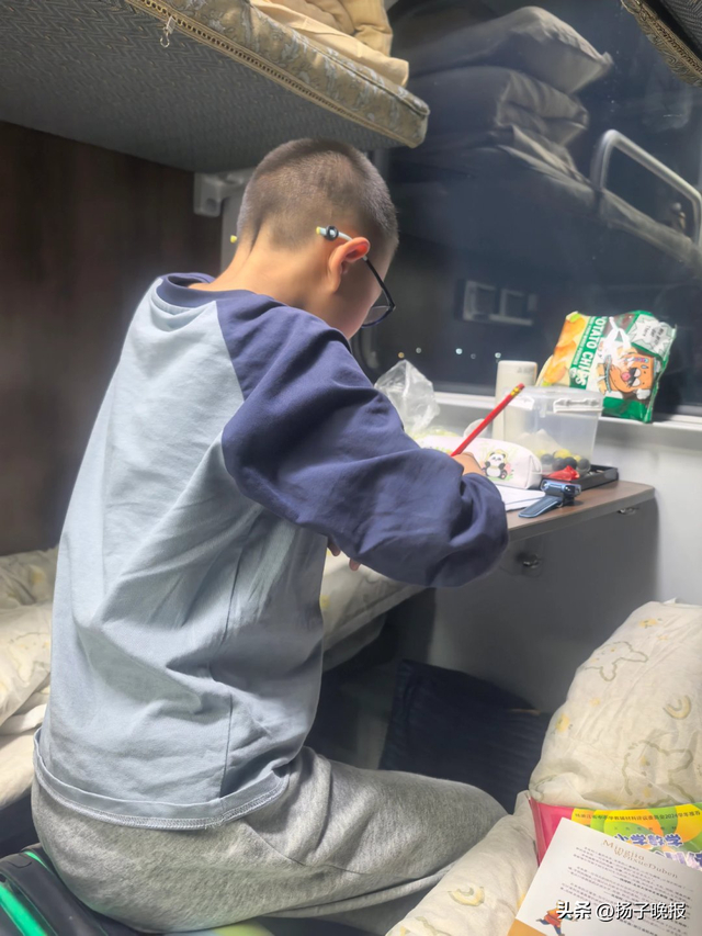 super妈咪选择了一趟硬卧列车,4月25日下午4:30上车,4月26日早上9点到达西安,虽然要乘坐16个小时,但她表示,一路上儿子边做作业边吃东西,晚上还美美地睡了一觉,16个小时一下子就过去了。