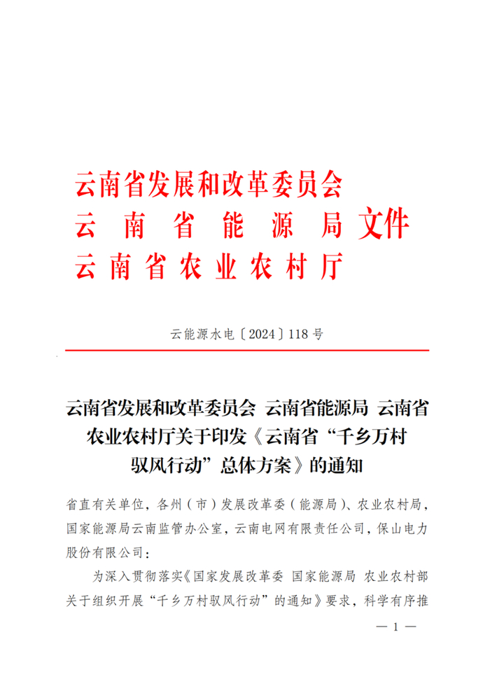 2025年1月26日,《云南省发展和改革委员会关于调整部分风电项目核准权限的通知(征求意见稿)》意见的公告指出:“对风电项目核准实行分层级管理,‘千乡万村驭风行动’风电项目由州(市)人民政府投资主管部门在省级总量控制制定的‘千乡万村驭风行动’项目开发建设方案规模内核准。”