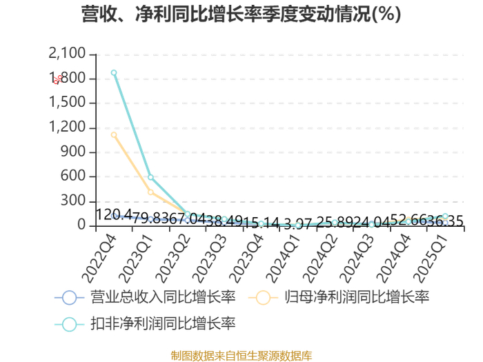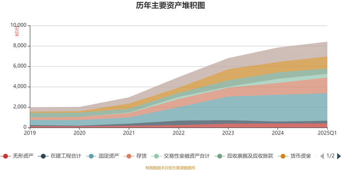资产重大变化方面,截至2025年一季度末,公司存货较上年末增加33.04%,占公司总资产比重上升3.55个百分点;应收票据及应收账款较上年末减少14.63%,占公司总资产比重下降1.63个百分点;固定资产较上年末增加2.87%,占公司总资产比重下降1.38个百分点;交易性金融资产合计较上年末减少11.18%,占公司总资产比重下降0.89个百分点。
