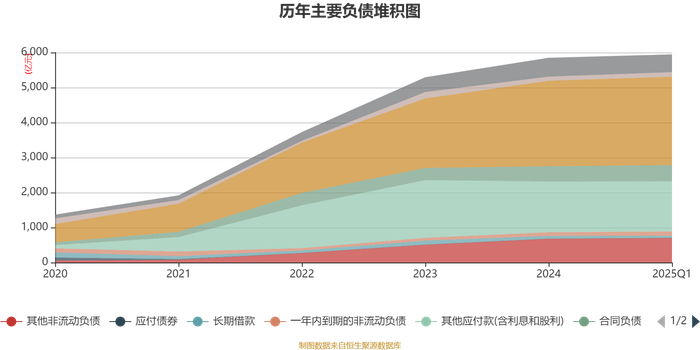 负债重大变化方面,截至2025年一季度末,公司其他应付款(含利息和股利)较上年末减少1.05%,占公司总资产比重下降1.44个百分点;应付票据及应付账款较上年末增加3.54%,占公司总资产比重下降1.09个百分点;应交税费较上年末减少25.95%,占公司总资产比重下降0.4个百分点;其他非流动负债较上年末增加3.43%,占公司总资产比重下降0.31个百分点。