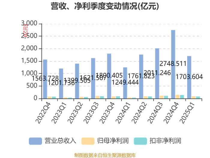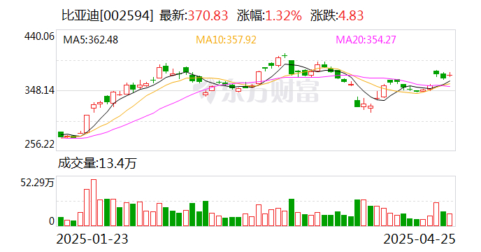 比亚迪:2025年一季度净利润91.55亿元 同比增长100.38%