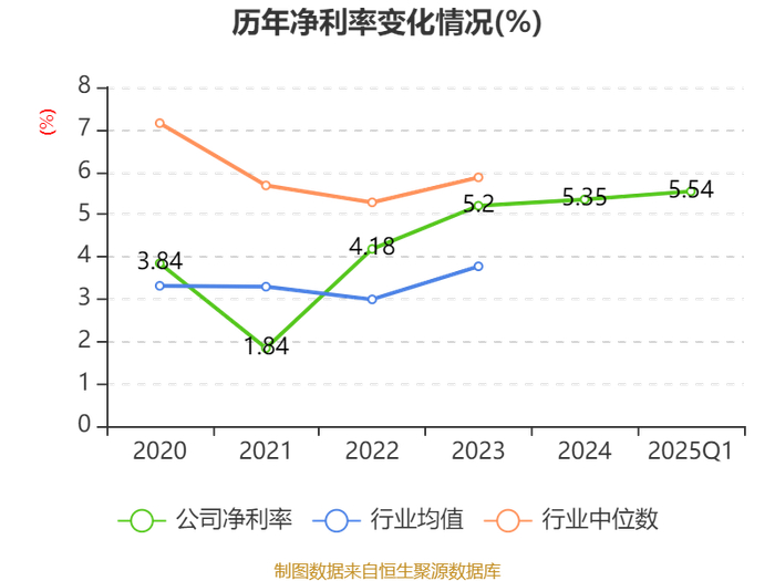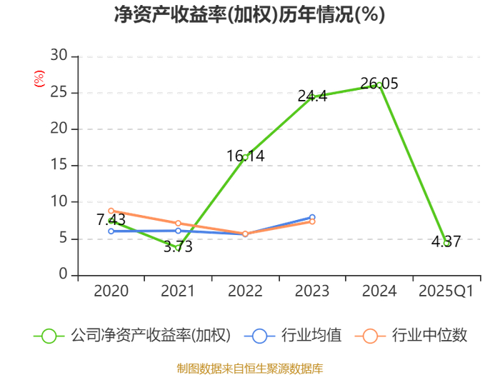盈利能力方面, 2025年一季度公司加权平均净资产收益率为4.37%,同比上升1.13个百分点。公司2025年第一季度投入资本回报率为3.55%,较上年同期上升1.19个百分点。