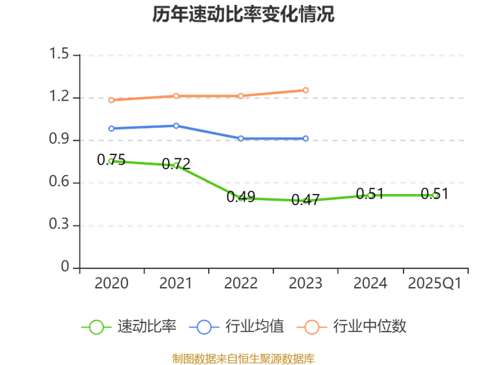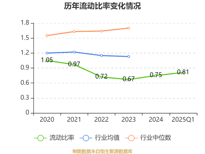 2025年第一季度,公司流动比率为0.81,速动比率为0.51。